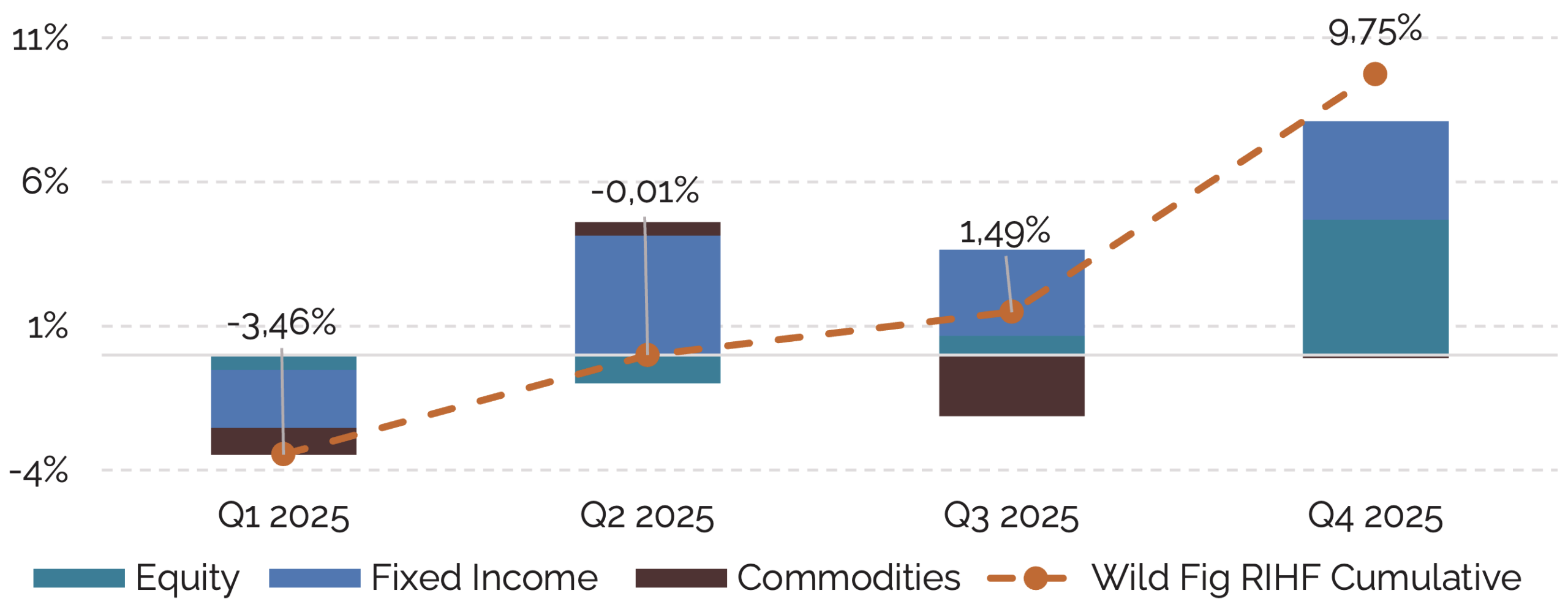 The Fund had a challenging start to 2025, with all three asset classes detracting from performance during the first quarter and following on the drawdown experienced in Q4 of 2024. This, however, was followed by a strong recovery, driven primarily by fixed income during Q2 and Q3 of 2025, and equities towards the latter part of the year, which resulted in a cumulative gain for the calendar year. The Fund remains highly diversified, enabling the strategy to pursue uncorrelated sources of alpha across a broad opportunity set.